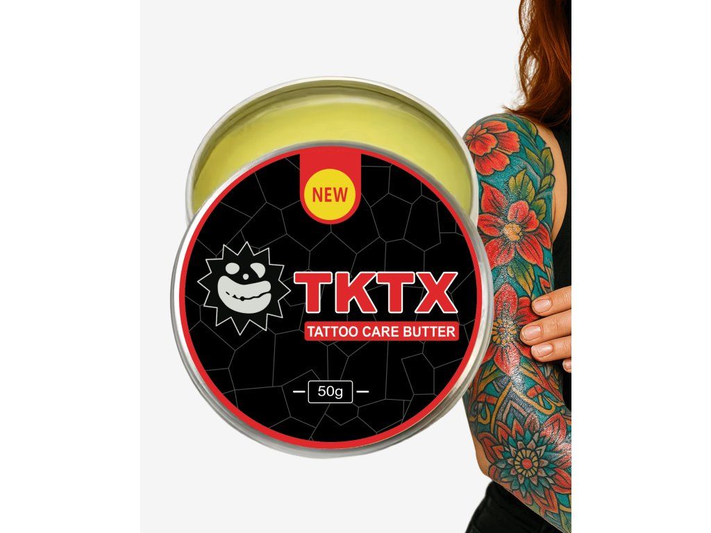 Unsere Tattoo Butter TKTX unterstützt die Regeneration der Haut direkt nach dem Tätowieren, beruhigt Reizungen und fördert eine gesunde Heilung ohne Narben.